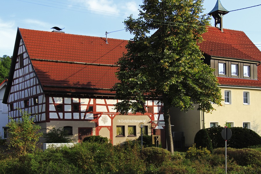 Schon lange hegten die Onstmettinger Albvereinler den Wunsch nach einem eigenen Vereinsheim. In den Jahren 1976/1977 interessierte man sich für den Kasten, aber Pläne der Stadtverwaltung in Richtung Museum führten zu keinem Ergebnis. Durch die Sanierung des Gebietes um das Onstmettinger Rathaus kam man der Idee näher und am 18. Mai 1977 stellte die OG den Antrag zum Umbau und Renovierung der Ochsenscheuer in ein Vereinsheim. Anträge auf Zuschüsse wurden gestellt und ein Bauausschuss gegründet, bestehend aus Edmund Boss, Alfred Munz, Heinrich Landmann und Heinz Hertler. Nach 5-jähriger Bauzeit und 5400 Arbeitsstunden unserer Mitglieder wurde schließlich ein sehenswertes Vereinsheim geschaffen, das am 2. Juli 1983 feierlich eingeweiht wurde.
