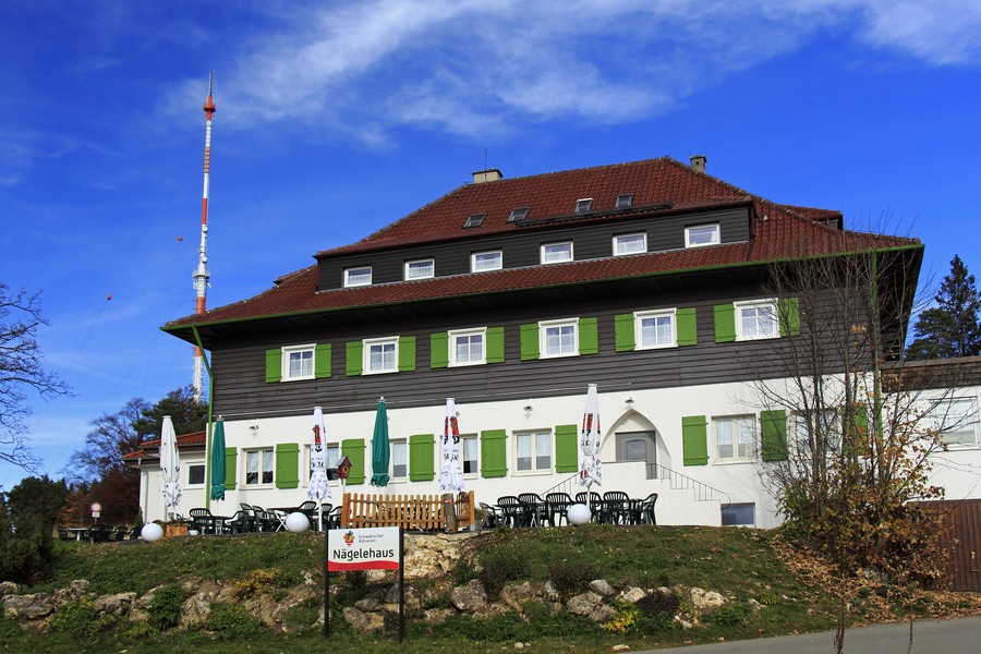 Zum 70. Geburtstag des Vereins- vorsitzenden Prof. Dr. h.c. Eugen Nägele 1926 wurden – ohne sein Wissen und sein Einverständnis – eifrig Spenden für einen Neubau gesammelt, der Nägeles Namen tragen sollte. Die OG Onstmettingen erwarb, ohne die weitere Entwicklung abzuwarten, das Gelände auf dem Raichberg. Nägele erteilte im Oktober 1926 seine Zustimmung zur Verwendung der Spendengelder für das Wanderheim auf dem Raichberg; die Hauptversammlung beschloss im April 1927 den Bau. In sechs Monaten waren Haus und Turm fertig; das Einweihungsfest am 11./12. August 1928 war ein prächtiger Erfolg für den Schwäbischen Albverein.